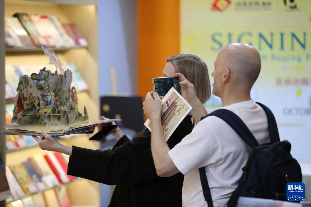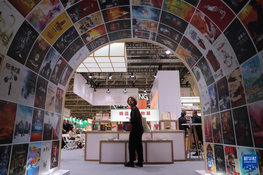10月15日,读者在德国法兰克福书展中国联合展台翻阅图书。