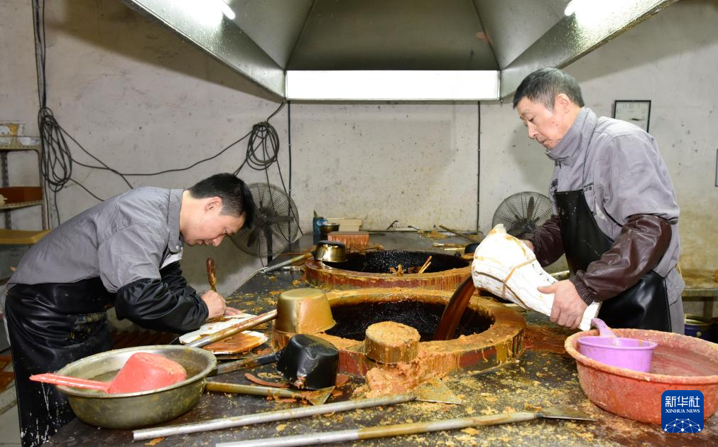 10月29日,安徽铜陵一家铜器制作企业的铜艺工人在灌蜡制作蜡模。