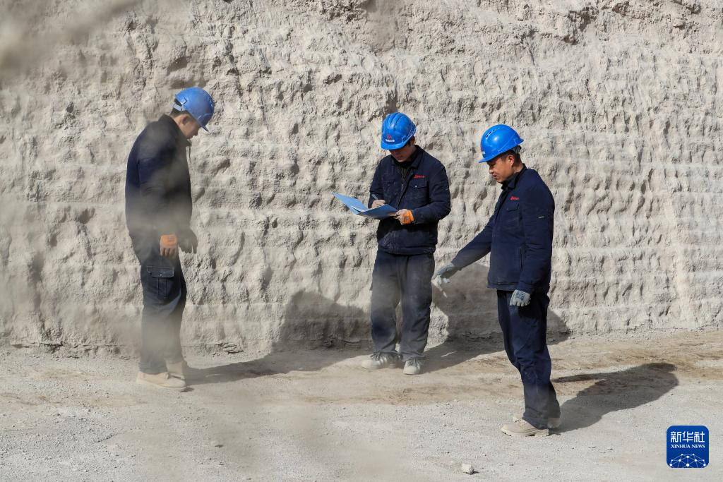 11月18日,敦煌研究院文物保护技术服务中心工作人员在观察西墙墙基排水处理效果。