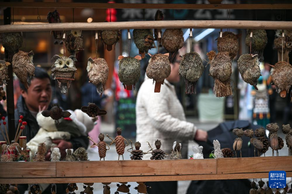 游客在贵州省黎平县肇兴侗寨选购文创产品(12月19日摄)。