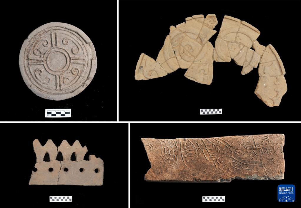 拼版照片:山东青岛市琅琊台战国秦汉时期遗址山顶建筑基址出土的建筑构件(资料照片)。