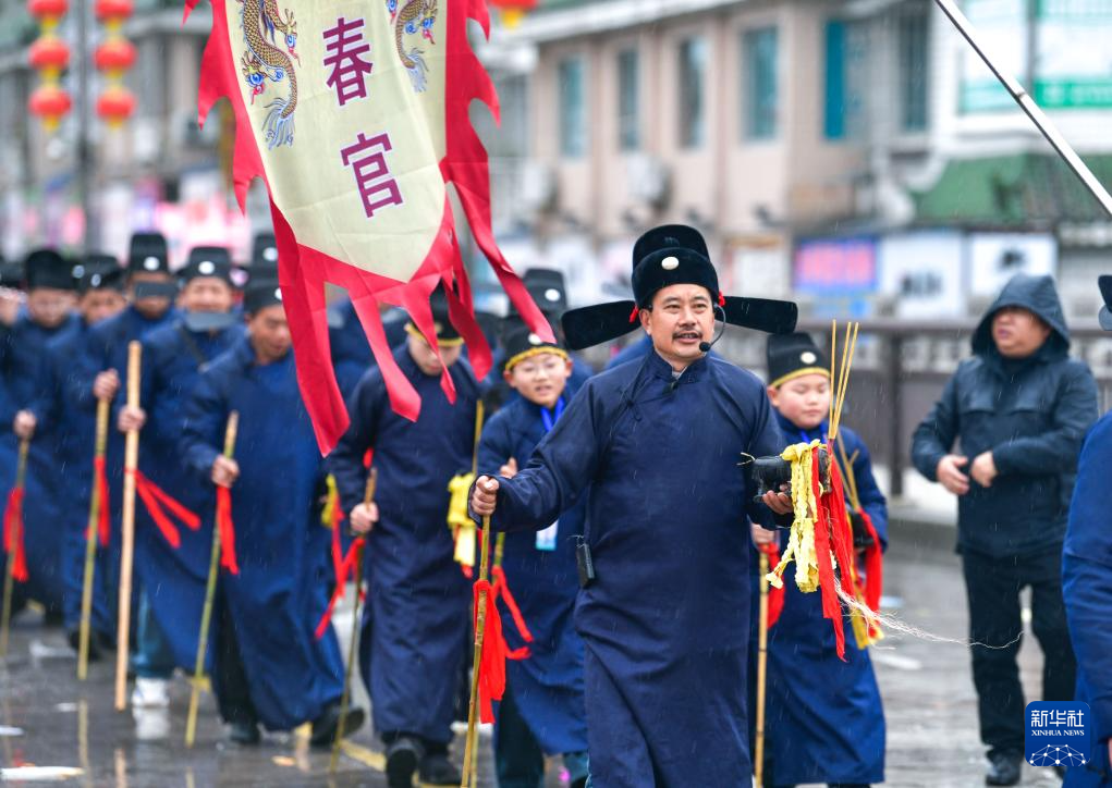 2月27日,春官非遗展演队在贵州省石阡县参加仡佬毛龙节巡游。