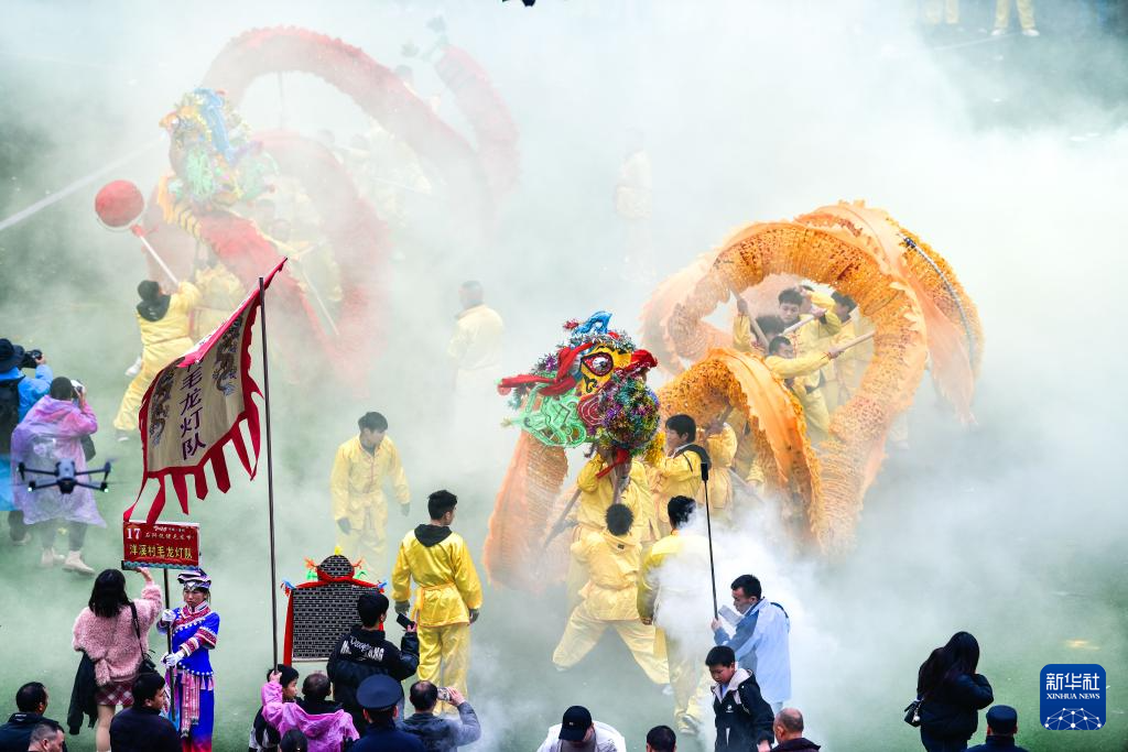 2月27日,人们在贵州省石阡县参加仡佬毛龙节舞龙大赛。
