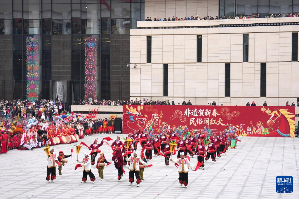 2月28日,中国工艺美术馆(中国非物质文化遗产馆)和中国共产党历史展览馆共同举办“非遗贺新春 民俗闹红火”活动,来自北京、陕西、山西、浙江、内蒙古等8个省区市的民俗展演团队,为观众奉上曾庄大鼓、麒麟舞、寿阳高跷竹马戏、蒙古族马头琴音乐等14项民俗展演。