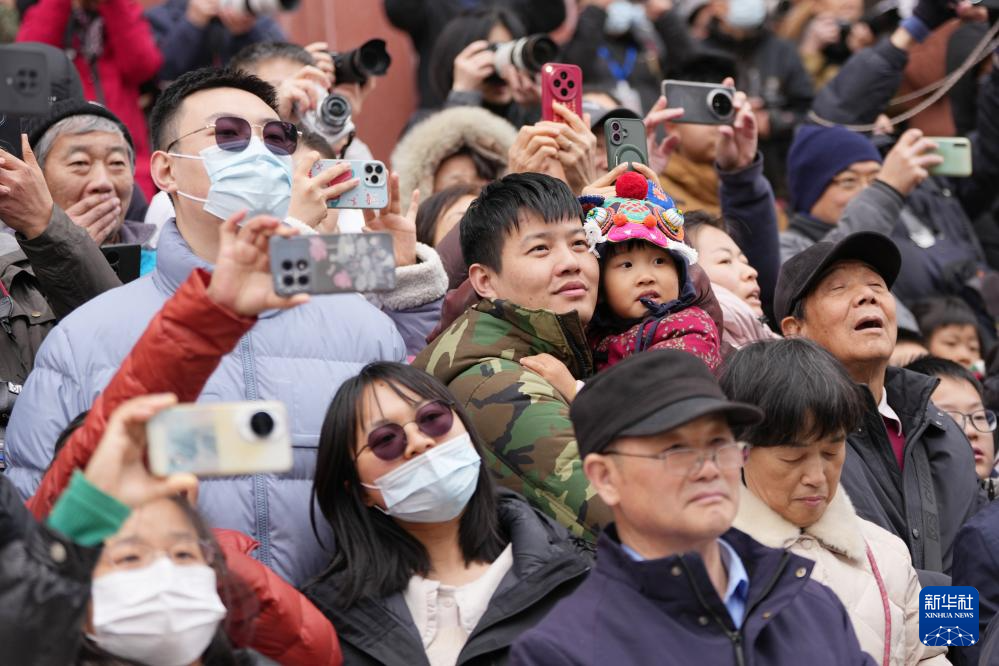 2月28日,观众在观看来自浙江浦江的民俗展演。