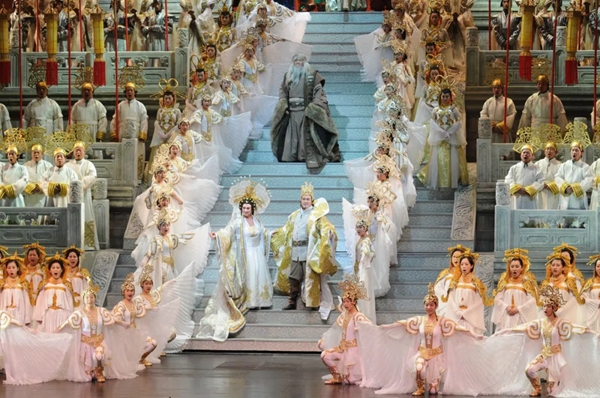 歌劇《圖蘭朵》是意大利作曲家賈科莫·普契尼根據(jù)童話劇改編的三幕歌劇,是普契尼最偉大的作品之一。故事講述了一個(gè)西方人想象中的中國傳奇故事,帶有濃郁的中國韻味。《圖蘭朵》中運(yùn)用了中國民歌元素,如吸收了江南民歌“茉莉花”主題,加之童聲合唱的演繹,干凈悠揚(yáng),極具東方色彩。