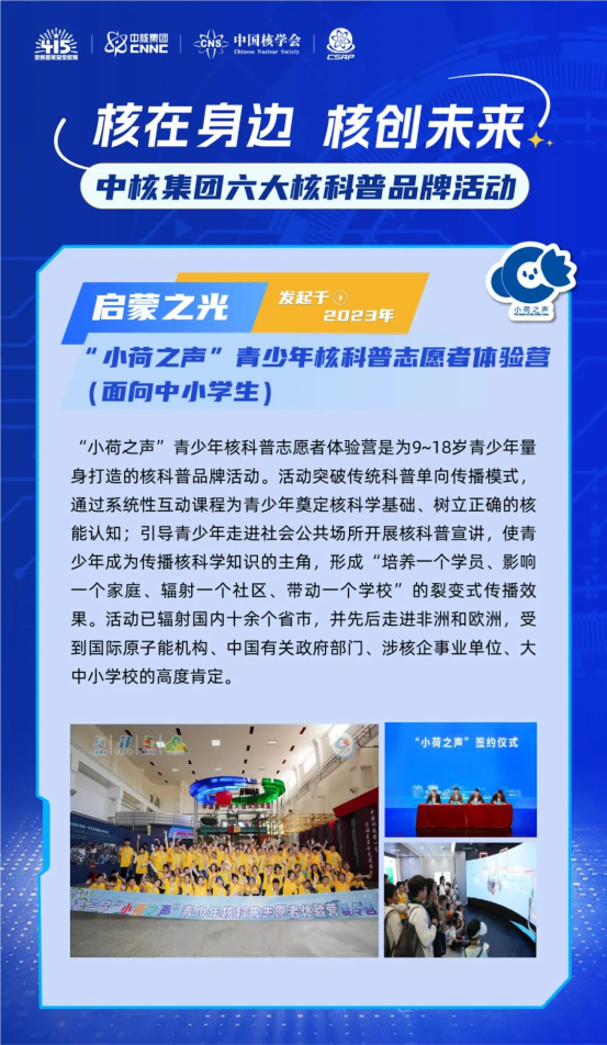 活动以“核在身边,核创未来”为核心理念,集中启动六大核科普品牌活动,并正式发布“核之光”2035行动计划,推动核科普从零散“活动式”宣传,迈向系统“生态化”建设,构建政产研学媒且全民参与的核科普新格局。