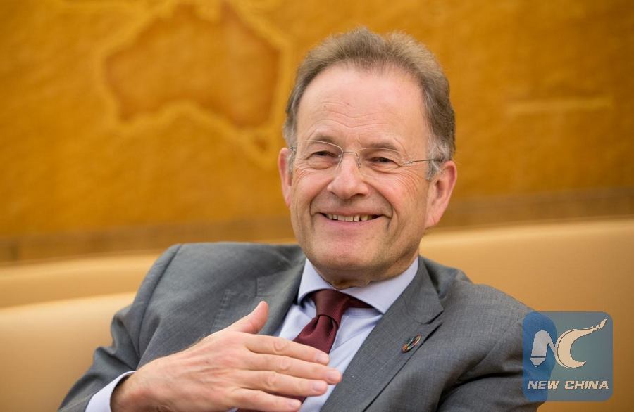 The Director-General of the United Nations Office at Geneva (UNOG), Michael Moller receives an interview with Xinhua in Geneva, Switzerland on Dec. 19, 2016. (Xinhua/Xu Jinquan)