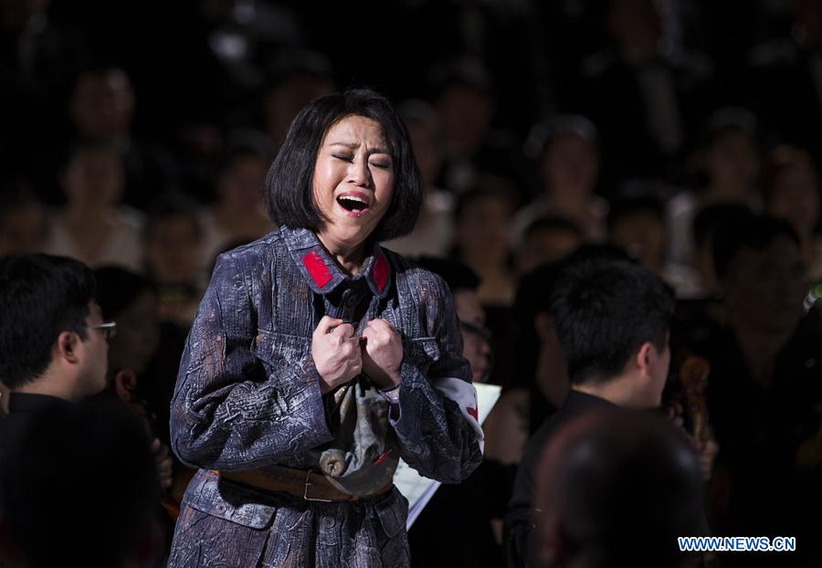A Chinese artist performs the opera The Long March in Forli, Italy, on Aug. 19, 2017. The opera was created by the China National Opera House and made its debut last year to commemorate the 80th anniversary of the victory of the Long March which was a military maneuver carried out by the Workers' and Peasants' Red Army of the Communist Party of China from 1934 to 1936. (Xinhua/Jin Yu)