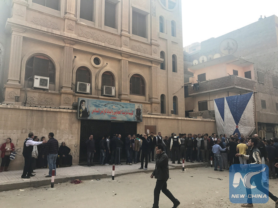 CAIRO, Dec. 29 (Xinhua) -- At least two policemen, three civilians and one militant were killed in a shootout outside a church south of Cairo on Friday, state-media reported.