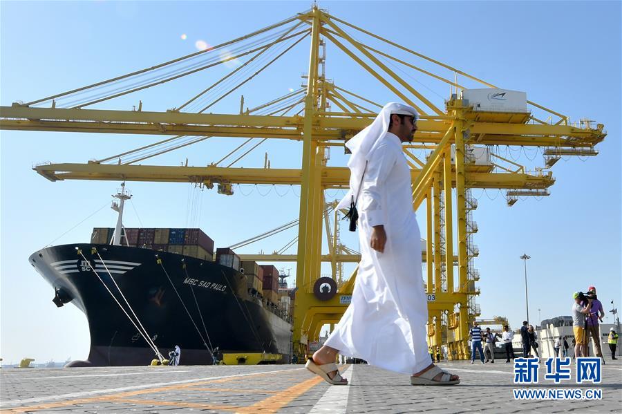 A man passes by a cargo ship at the Hamad Port in Doha, capital of Qatar, on June 14. (XINHUA)