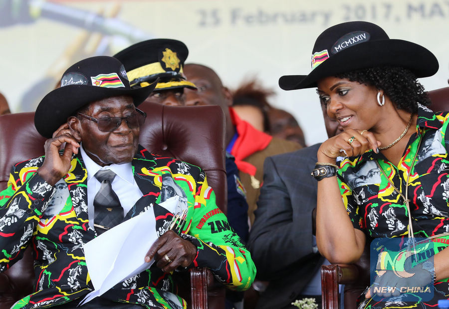 Zimbabwean President Robert Mugabe and his wife Grace attended the 21st Movement Celebrations to mark his 93rd birthday celebrations at Matopos National Park in Mateleland South, Zimbabwe, Feb. 25, 2017. (Xinhua/Stringer)