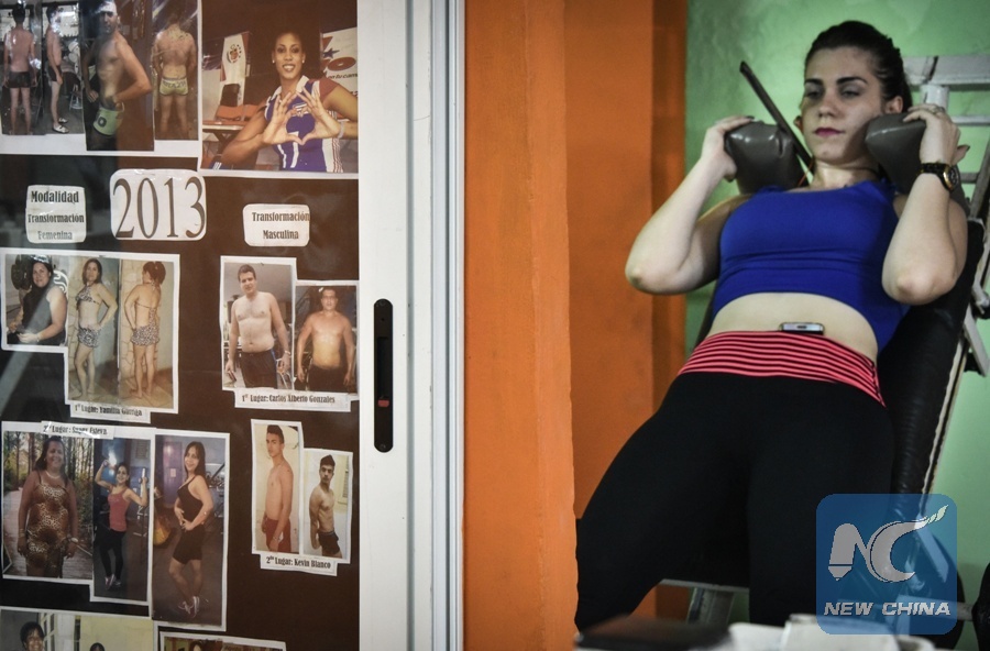 A woman exercises at a gym in Havana on May 17, 2016. (Xinhua/ AFP PHOTO)