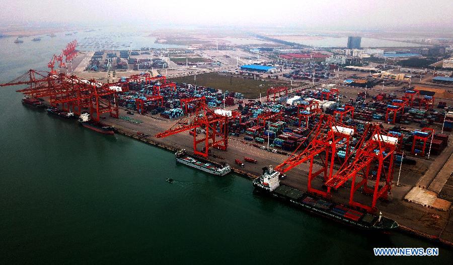 Photo taken on Nov.9, 2017 shows a wharf at Qinzhou port in south China's Guangxi Zhuang Autonomous Region. By making full use of its geographical location and the potential of coastlines and border areas, Guangxi capitalized on its advantages and played a bigger role in the Belt and Road Initiative. Through ports and the Beibu Gulf Economic Zone, the trade cooperation between Guangxi and ASEAN countries gained great prospects. (Xinhua/Zhang Ailin)