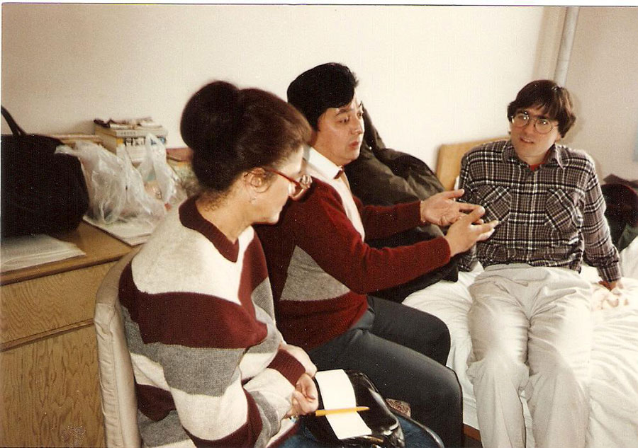 David Moser is interviewing Chinese crosstalk performer Li Jindou in 1989. (Photo provided by Moser)