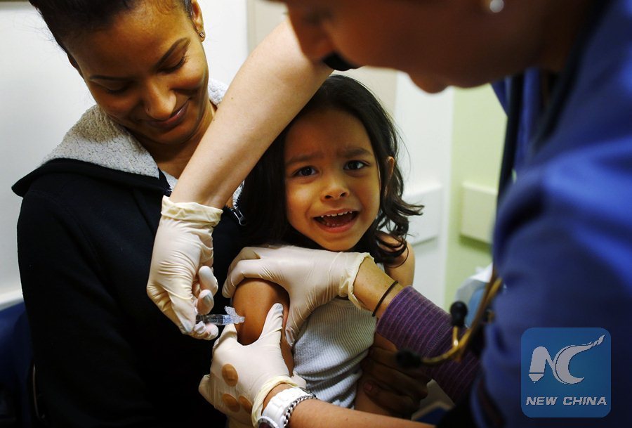 Jayden Mercado, 4, sits in his mother Yariluz Ocasio's lap while he gets an influenza vaccine at Boston Children's Hospital in Boston, Massachusetts January 10, 2013. (Xinhua/REUTERS)
