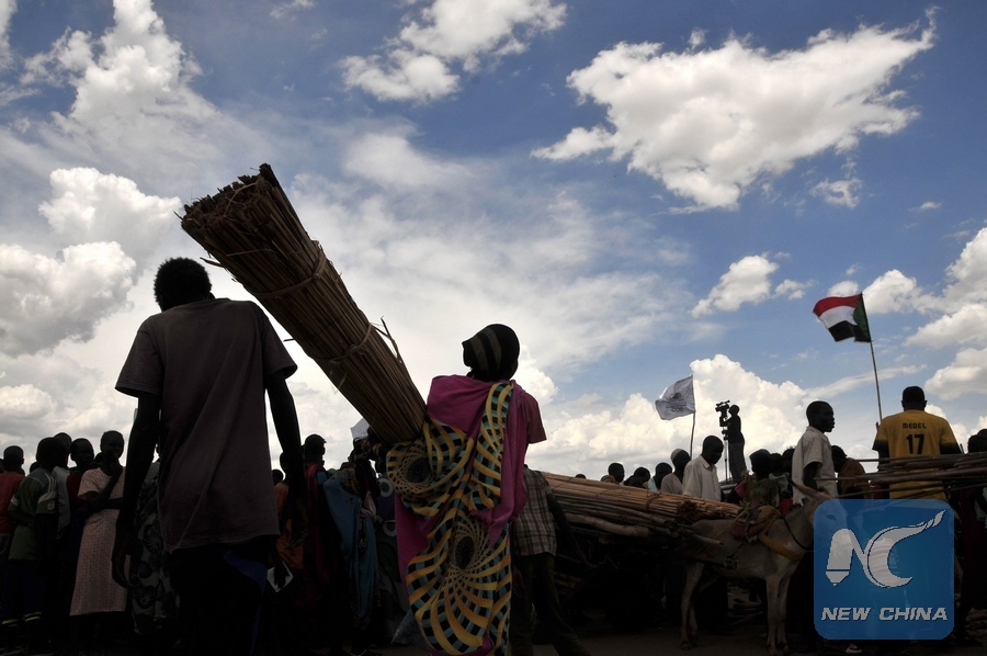 Refugees from South Sudan wait to be settled outside the Khour Al-Waral refugee camp in Al-Salam locality, some 69-kilometers south of Rebek, capital of White Nile State, Sudan, May 18, 2017. (Xinhua/Mohamed Babiker)