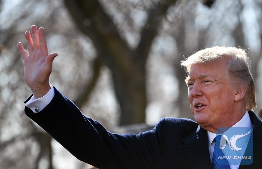 U.S. President Donald Trump leaves after speaking to March for Life participants and pro-life leaders at the Rose Garden of the White House in Washington D.C., the United States, on Jan. 19, 2018. (Xinhua/Yin Bogu)