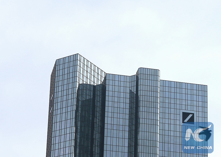 Photo taken on May 3, 2017 in Frankfurt, Germany shows the tower of the Deutsche Bank. (Xinhua/Luo Huanhuan)