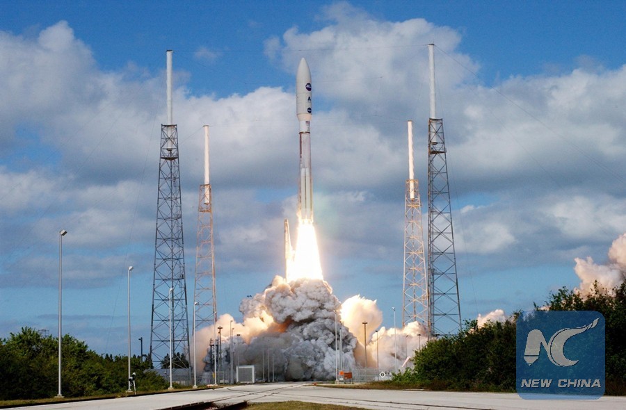 The photo handed out by NASA shows the unmanned probe, New Horizons, blasting off from the Cape Canaveral Air Force Station, Florida, the United States, Jan. 19, 2006. (Xinhua Photo/NASA)