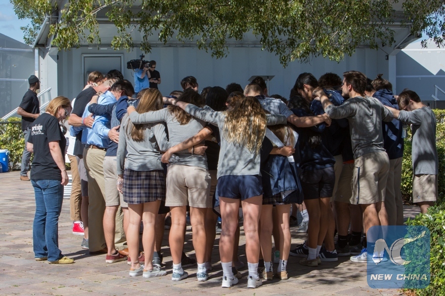 WASHINGTON, Feb. 15 (Xinhua) -- U.S. President Donald Trump stressed Thursday making schools more secured and tackling mental health in the wake of a mass shooting at a Florida high school with 17 fatalities, as it has sparked debates on gun control in the country long plagued by gun violence.