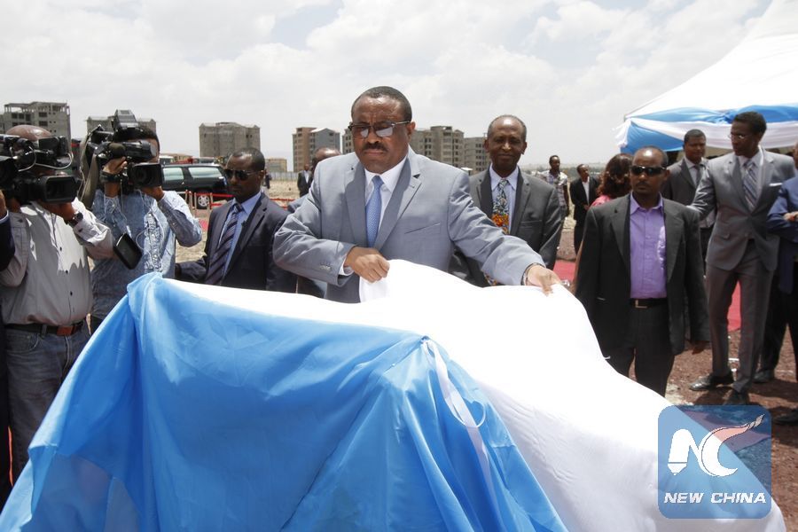 File photo taken on April 20, 2017 shows that then Ethiopian Prime Minister Hailemariam Desalegn (Front) laying a cornerstone for the construction of first phase of the Medical City Center in Addis Ababa, capital of Ethiopia. (Xinhua/Michael Tewelde)