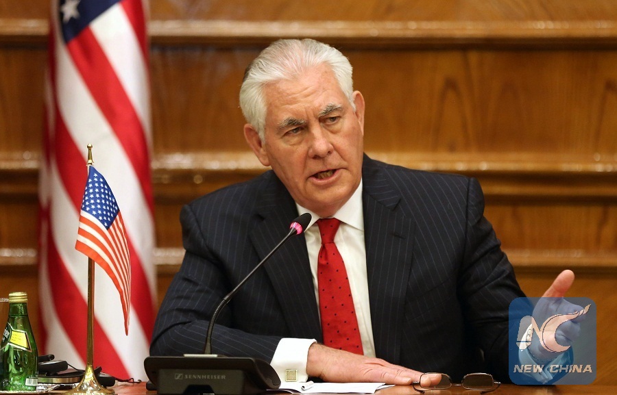 US Foreign Secretary Rex Tillerson speaks during a joint press conference with Jordanian foreign minister in Amman on February 14, 2018. (AFP Photo)