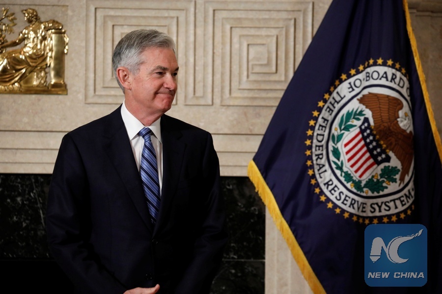Federal Reserve Chairman Jerome Powell arrives to take the oath of office at the Federal Reserve in Washington, U.S., Feb. 5, 2018. (Xinhua/REUTERS)