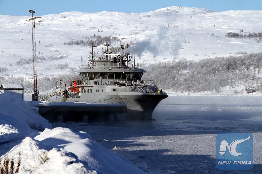 Photo taken on March 9, 2018, shows a ship at a dock in the Arctic town of Kirkenes, Norway. (Xinhua/Liang Youchang)