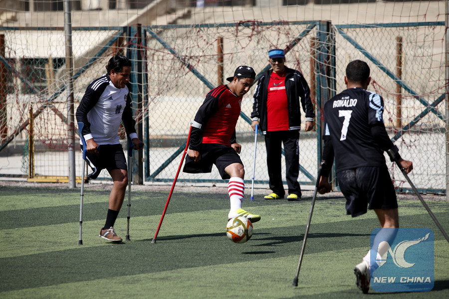 "I am so proud of my father. He does not only join the Miracle Team but he's a bodybuilder too. He did not stop playing football despite the accident that amputated his leg 12 years ago," Ahmed Ibrahim, a boy who was watching the training, told Xinhua.