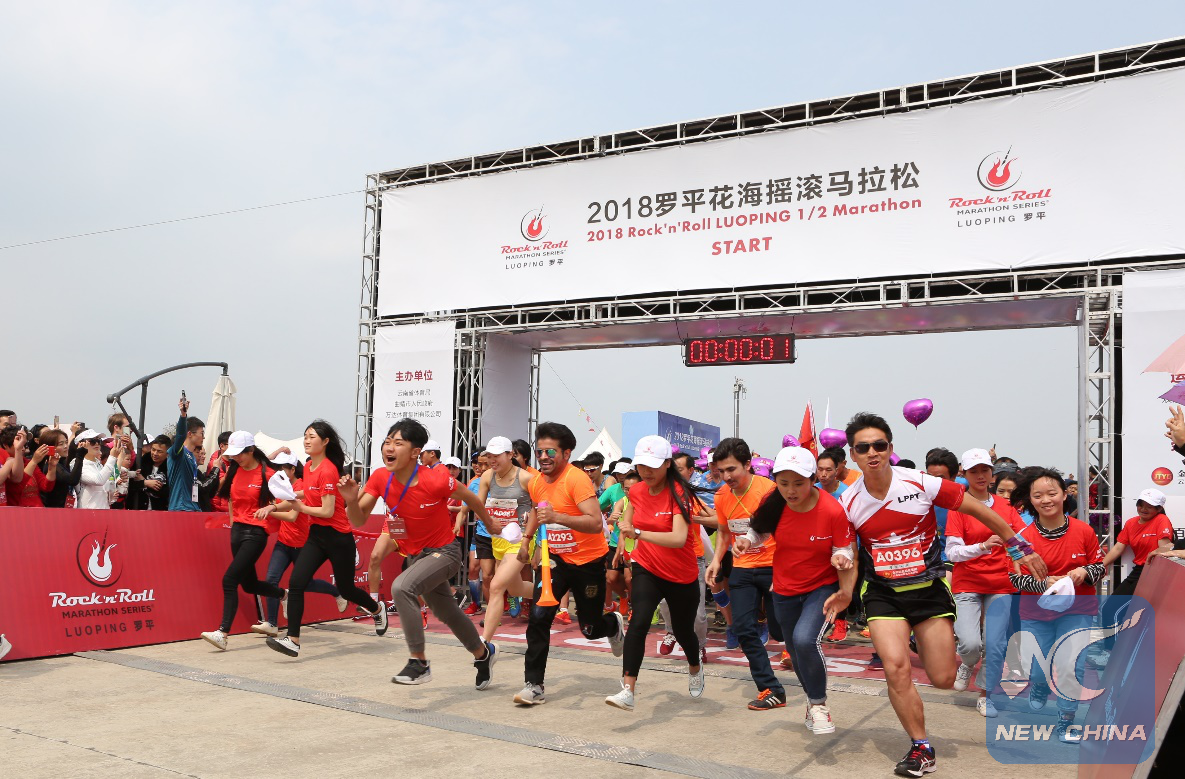 KUNMING, China, March 12 (Xinhua) -- Nearly 8,000 runners from 36 countries and regions took part in the 2018 Rock 'n' Roll Marathon Luoping in Qujing, a city in Southwest China's Yunnan Province.