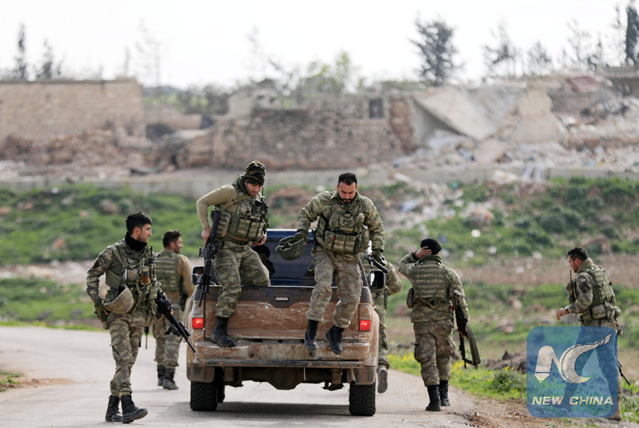 ANKARA, March 12 (Xinhua) -- Turkish military and its ally the Free Syrian Army (FSA) made rapid advances during its operation in Syria's Afrin region on Monday, only 1.5 km away from its city center, state-run Anadolu Agency reported.