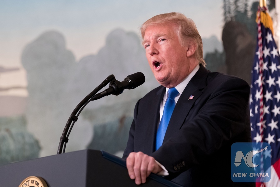 U.S. President Donald Trump speaks on new Iran strategy at the White House in Washington D.C., the United States, on Oct. 13, 2017. (Xinhua/Ting Shen)