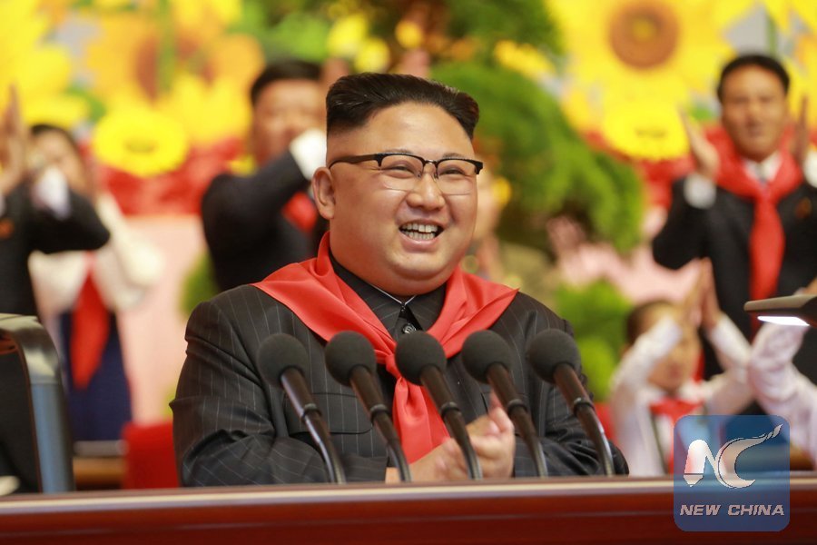Photo provided by Korean Central News Agency (KCNA) on June 7, 2017 shows Kim Jong Un, top leader of the Democratic People's Republic of Korea(DPRK), taking part in the 8th Congress of the Korean Children's Union (KCU) in Pyongyang on June 6, 2017. (Xinhua/KCNA)