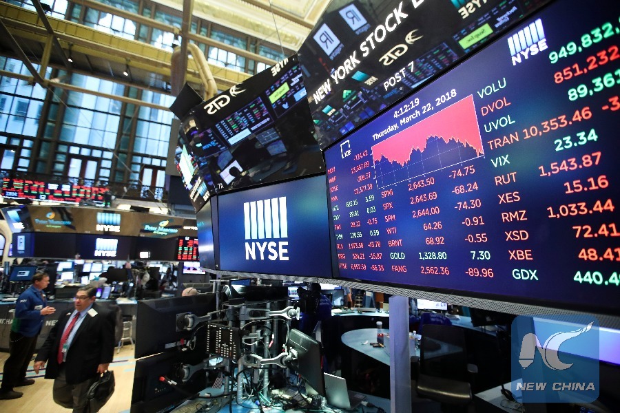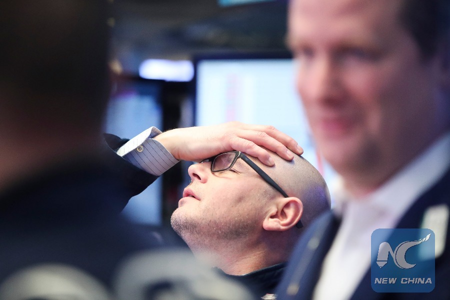 U.S. stocks ended lower on Thursday, with the Dow plunging over 700 points, after the U.S. President Donald Trump announced to impose tariff on imported products from China. (Xinhua/Wang Ying)