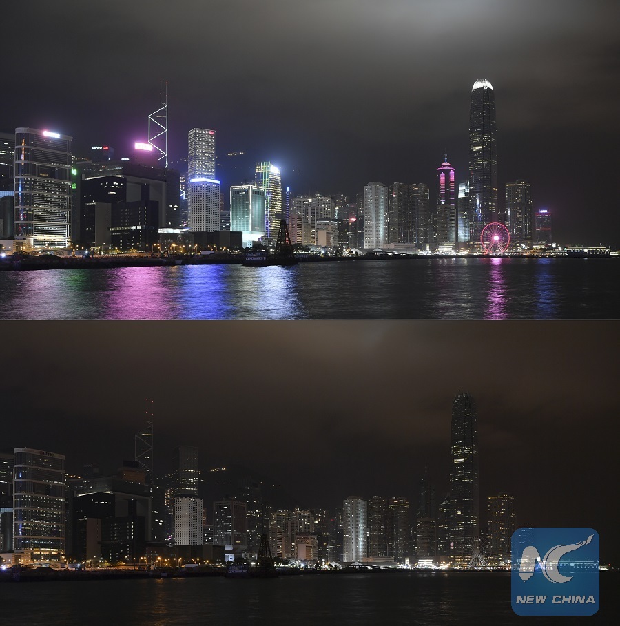 At 8:30 p.m. local time, the Victoria Harbor, known for its night scenes, turned dim as most of the famous landmarks on both sides of the harbor had their lights switched off. They included International Finance Center, Hong Kong Convention and Exhibition Center, and Tsim Sha Tsui Clock Tower.