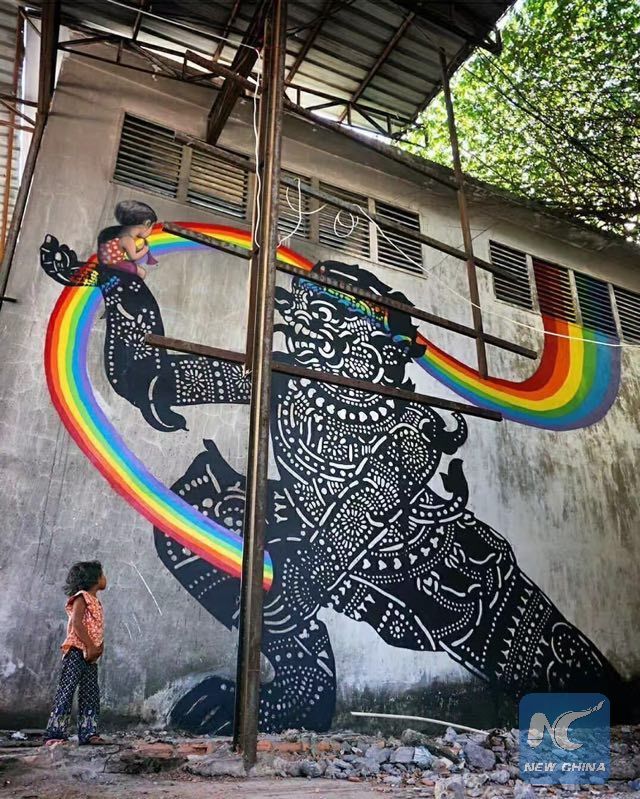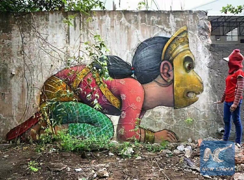 Murals drawn by French street artist Julien Seth Malland in China's Shanghai