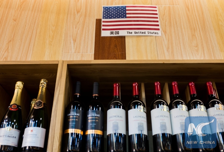 Wine produced in the United States is on display at a supermarket in Beijing, China, April 5, 2018. (Xinhua/REUTERS)