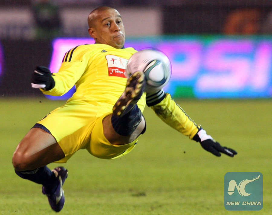 (File photo)FC Anzhi Makhachkala's Brazil defender Roberto Carlos kicks the ball during the Russian Football League Championship match against FC Zenit St. Petersburg in St. Petersburg on March 21, 2011. (AFP photo)