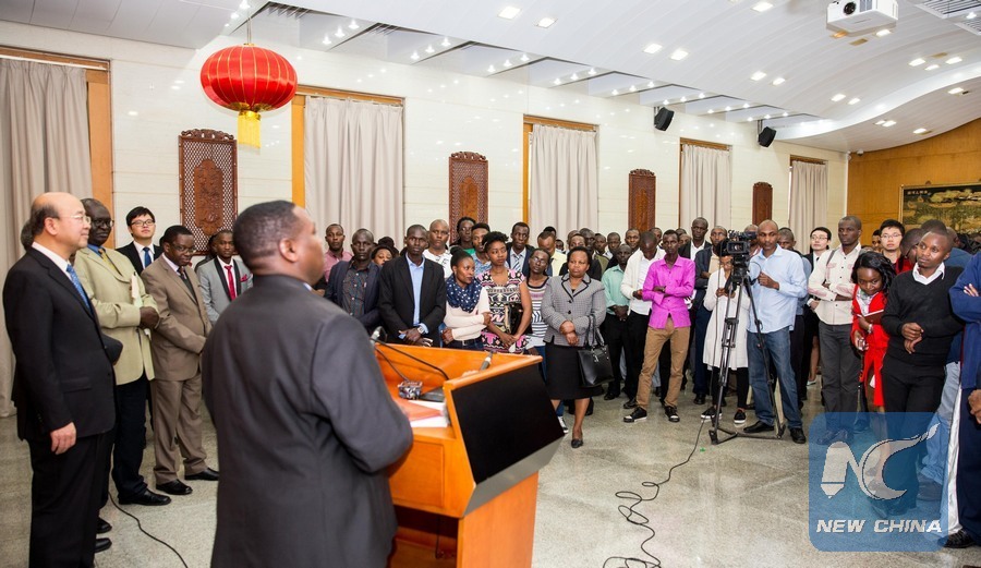 People attend a ceremony to bid farewell to Kenyan students who have received scholarships to study in China, in Nairobi, Kenya, on Aug. 24, 2017. A ceremony was held at the Chinese Embassy in Kenya on Thursday to bid farewell to 140 Kenyan students who have received scholarships to study in China. (Xinhua/Lyu Shuai)