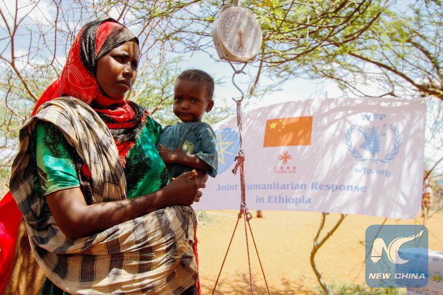 In four rounds of supports, through bilateral and multilateral channels, China has so far provided an emergency aid to Ethiopia totaling roughly 36.6 million U.S. dollars, making it the third largest food aid contributor in the East Africa country, according to figures from Ethiopia's National Disaster Risk Management Commission.