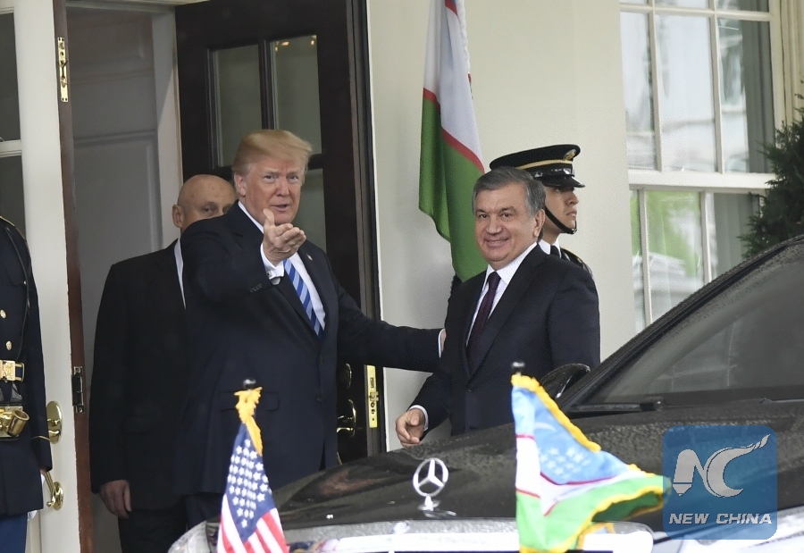 WASHINGTON, May 16 (Xinhua) -- U.S. President Donald Trump met with visiting Uzbek President Shavkat Mirziyoyev at the White House on Wednesday and the two discussed Afghanistan and bilateral trade cooperation.