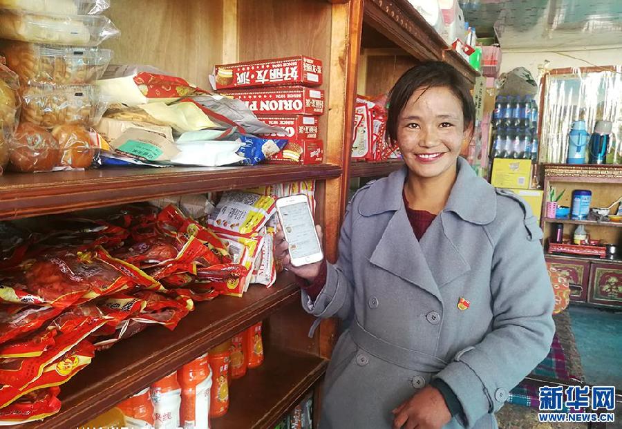 Niji Lamu shows the goods purchased online. (Xinhuanet/Zhang Chen)
