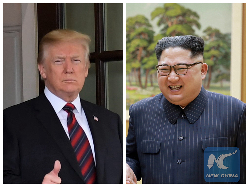 This file combination photo created on June 2, 2018 shows U.S. President Donald Trump (L) and Kim Jong Un (R), top leader of the Democratic People's Republic of Korea (DPRK). (Xinhua)