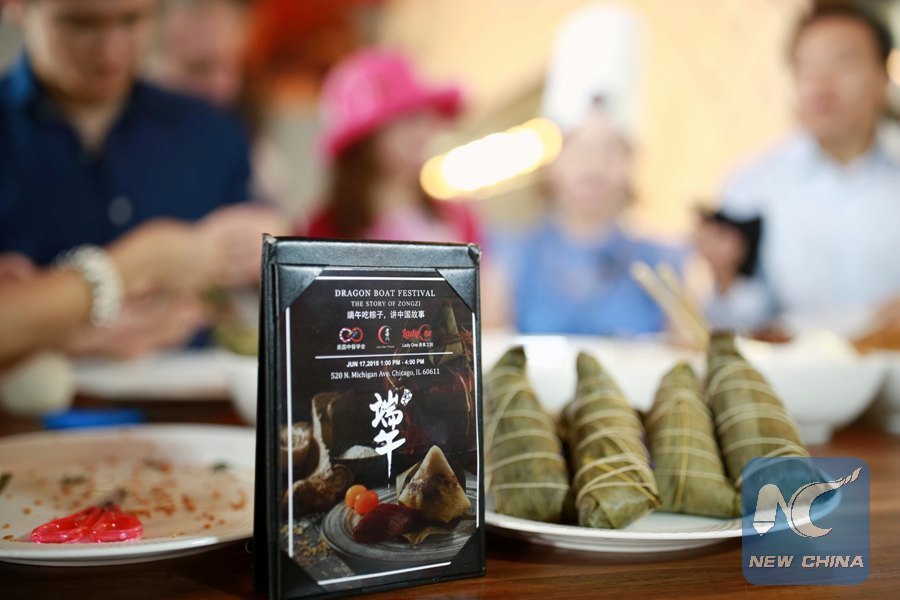 CHICAGO, June 17 (Xinhua) -- Lao Sze Chuan, the most recognized Chinese restaurant located on the Magnificent Mile in downtown Chicago, offered Zongzi, a kind of rice dumpling on Sunday to mark traditional Chinese Dragon Boat Festival.