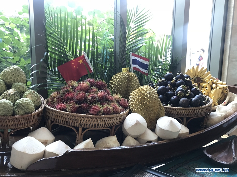 Tropical fruits from Thailand are presented at the Thai Festival 2018 “Spice up Your Day with Thai Tastes”. The festival was held at the Royal Thai Embassy, Beijing, June 23, 2018. This is the second time that the Thai Festival is organised here as guests can enjoy various activities in the midst of Thai surroundings. (Xinhuanet/Liang Yurou)