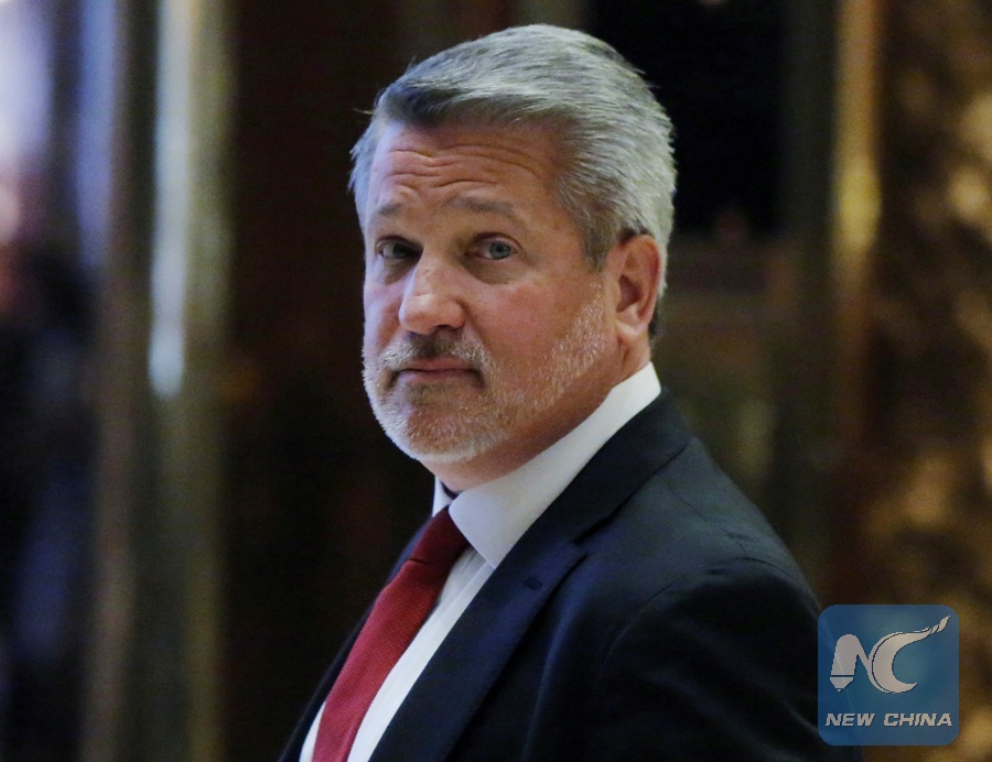 File Photo: Fox News President Bill Shine departs after meeting with U.S. President-elect Donald Trump at Trump Tower in the Manhattan borough of New York, U.S., Nov. 21, 2016. (Xinhua/REUTERS)