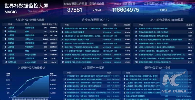BEIJING, July 17 (Xinhua) -- In a first for Xinhua News Agency, 37,581 machine-generated videos were created over the course of the 2018 FIFA World Cup by its in-house developed platform "MAGIC."