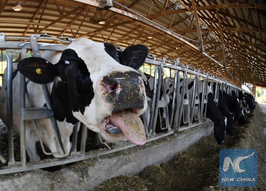 Photo taken on July 24, 2018 shows cows raised in Neldell farm located in rural Dells of Wisconsin, the United States. Unexpected trade disputes initiated by the Trump administration have dealt a big blow to the U.S. dairy industry, and diminished hopes of survival for this medium-sized century-old farm. (Xinhua/Liu Jie)
