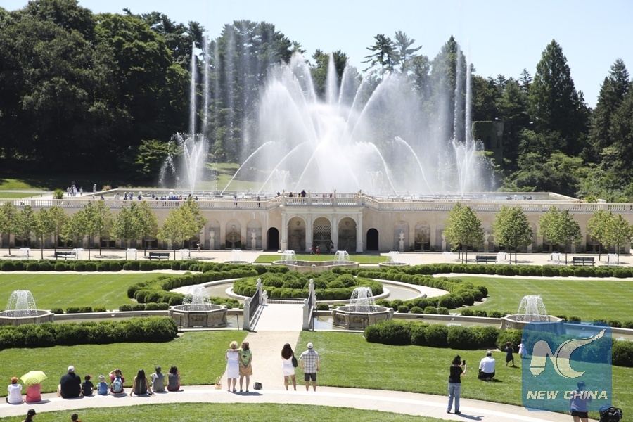 Tourists enjoy themselves at Longwood Gardens in Chester County in Pennsylvania, the United States, July 9, 2018. While U.S. President Donald Trump sees an "economic enemy" in China, the northeastern U.S. county of Chester in Pennylvania sees an economic partner. (Xinhua/Wang Ying)